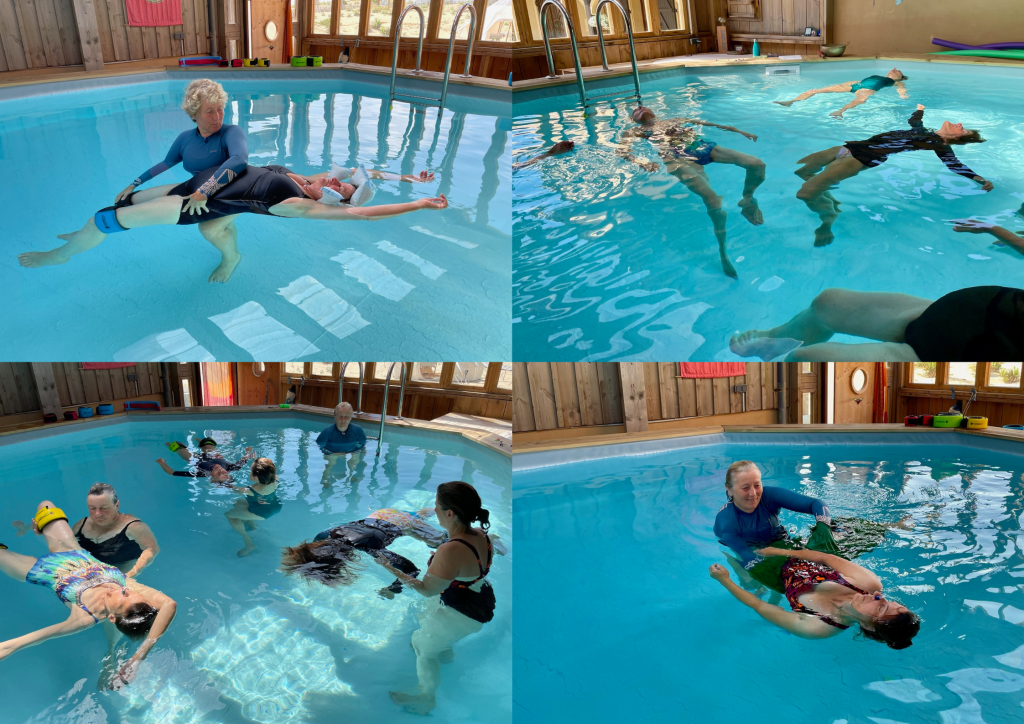 Stéphanie a ensuite pratiqué un soin ostéo-articulaire individuel pour permettre au corps de retrouver sa mobilité et une meilleure amplitude de mouvement. L’eau chaude et l’état d’apesanteur contribuent au relâchement total et facilitent la libre expression du corps.