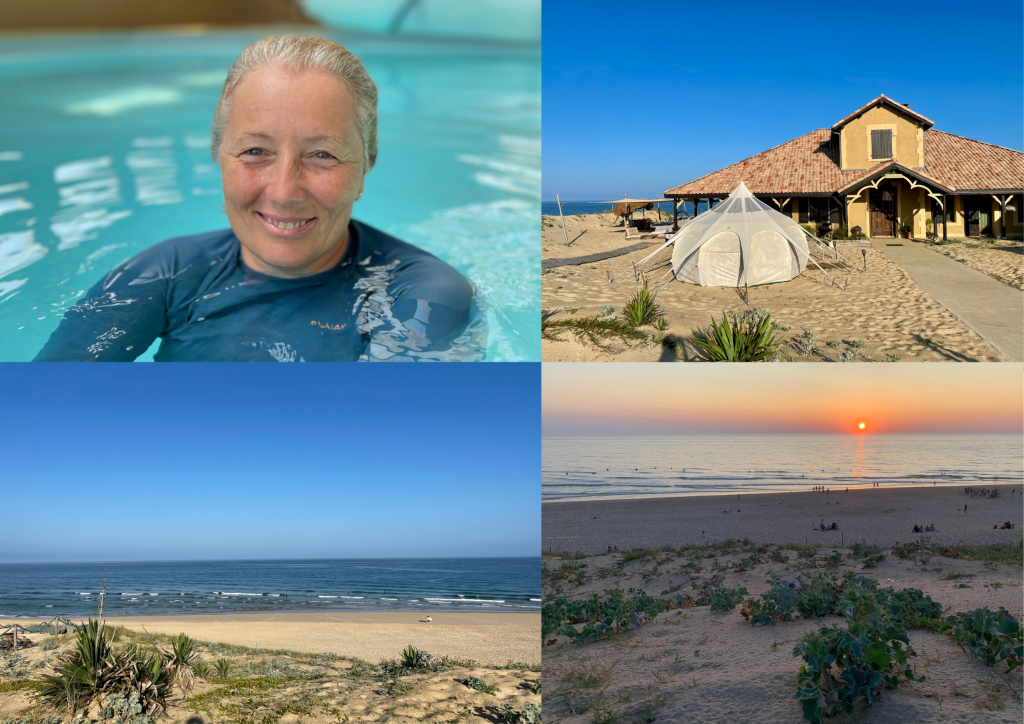 Dans le magnifique cadre du Beach Camp Temple, sur la dune de Vieux-Boucau, face à l’océan, cette deuxième édition du séjour “De l’eau à la terre” a invité les participantes à une renaissance par des soins d’ostéopathie aquatique, alliés à des pratiques de conscience corporelle, telles que des massages, des séances matinales de réveil musculaire sur la plage, ainsi qu’un atelier sur les 5 sens et un voyage sonore.