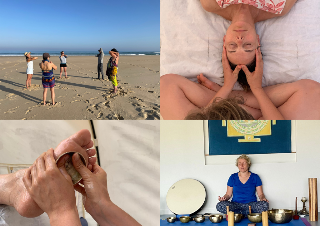 Afin de célébrer cette renaissance et ce passage de la vie fœtale à la vie terrestre, Muriel a accompagné les participantes dans une prise de conscience approfondie de leur corps. Elle les a reconnectées à l’élément « terre » à travers deux types de massages : un massage doux au bol kansu, ainsi qu’un massage Abhyanga mêlant des techniques de shiatsu et d’ayurvéda, réalisé à l’huile de coco. Ces soins visaient à ancrer les participantes dans le moment présent et à renforcer leur lien avec leur corps.